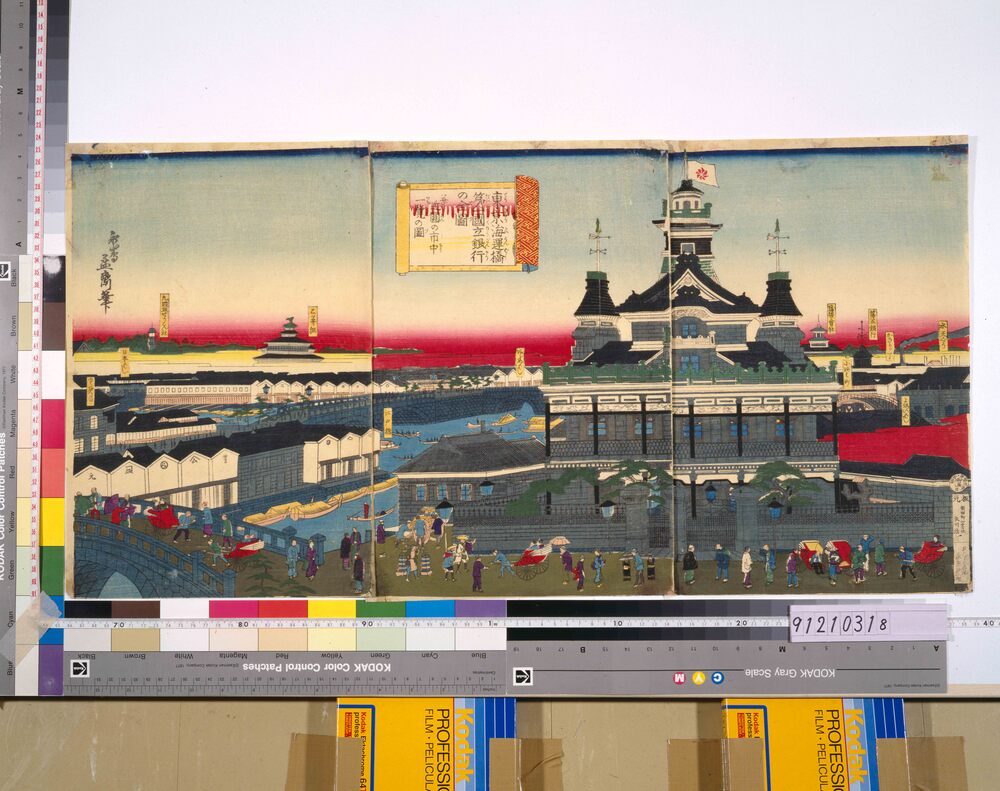 Famous Views of Tokyo : Shinkai Pond with the Distant View of Kinryuzan Temple in Asakusa