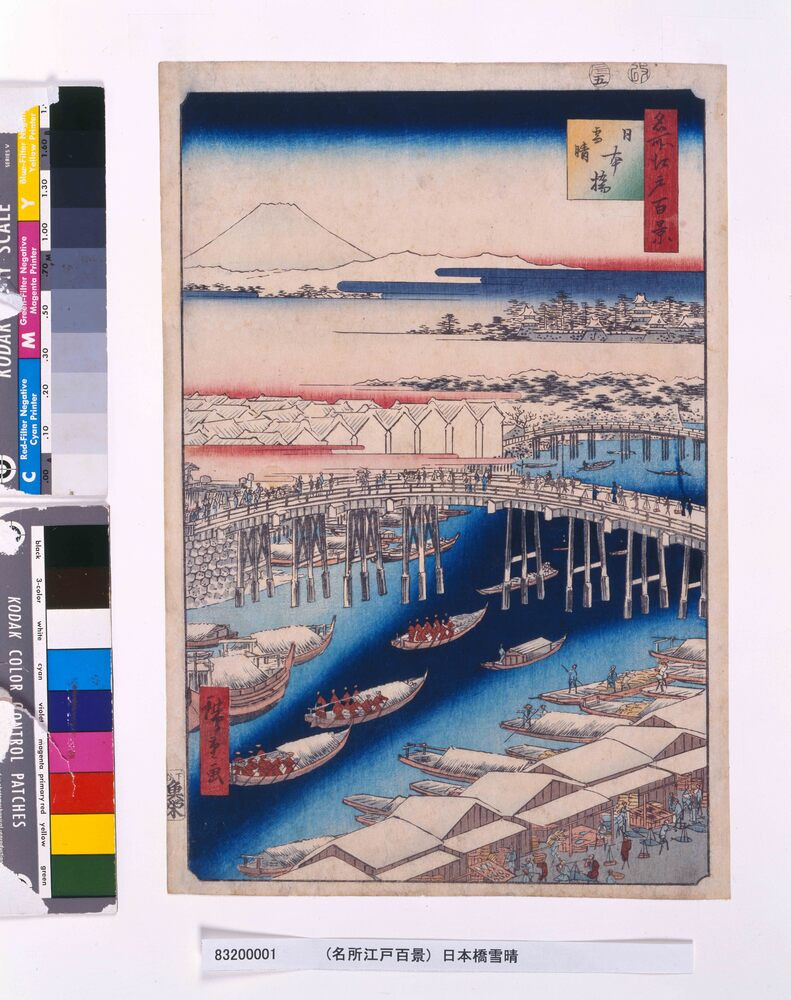 - UTAGAWA Hiroshige “One Hundred Famous Views of Edo: Clear Morning After Snow at Nihonbashi Bridge” (Edo-Tokyo Museum) Source: Tokyo Museum Collection (https://museumcollection.tokyo/en/works/6234875/)