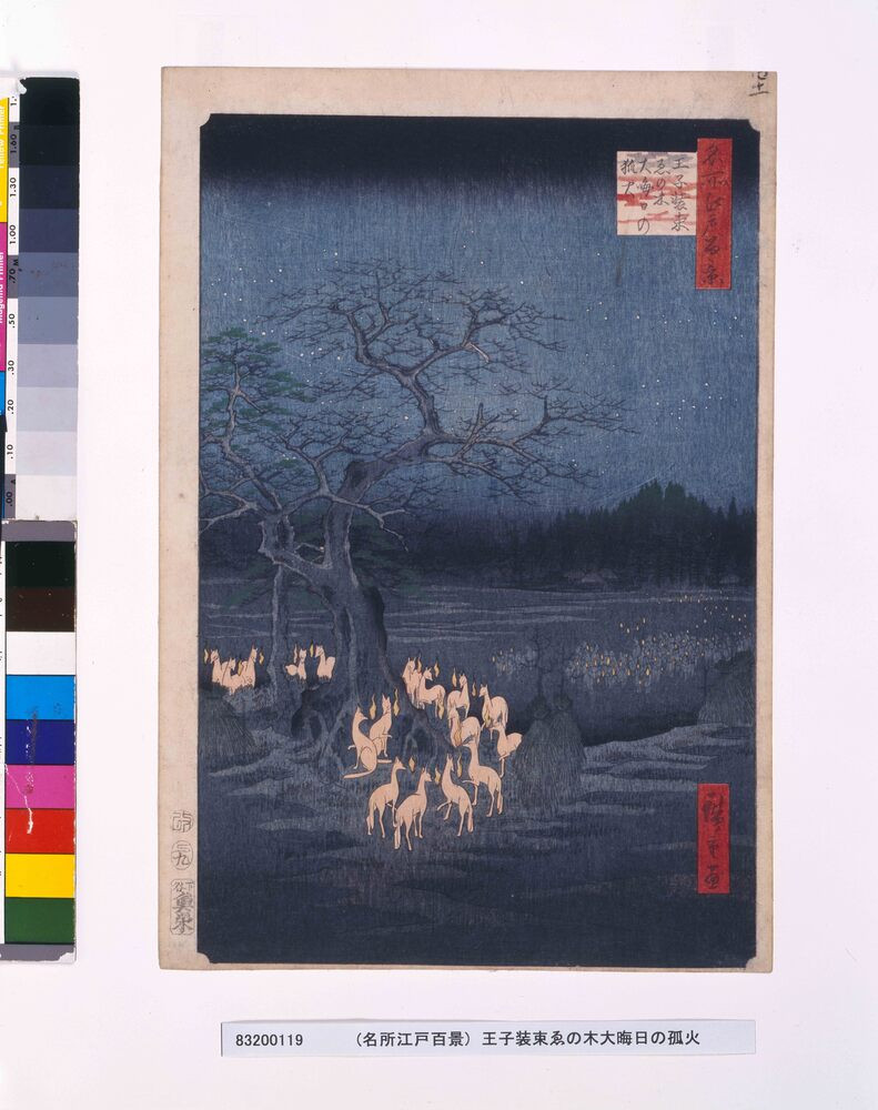 - One Hundred Famous Views of Edo: Foxfires Gathered by the Hackleberry Tree near Oji Inari Shrine on New Year's Eve