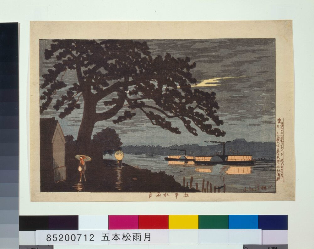 - Kobayashi Kiyochika “Gohommatsu Pine by Moonlight in the Rain” (Edo-Tokyo Museum) Source: Tokyo Museum Collection (https://museumcollection.tokyo/en/works/6235344/)