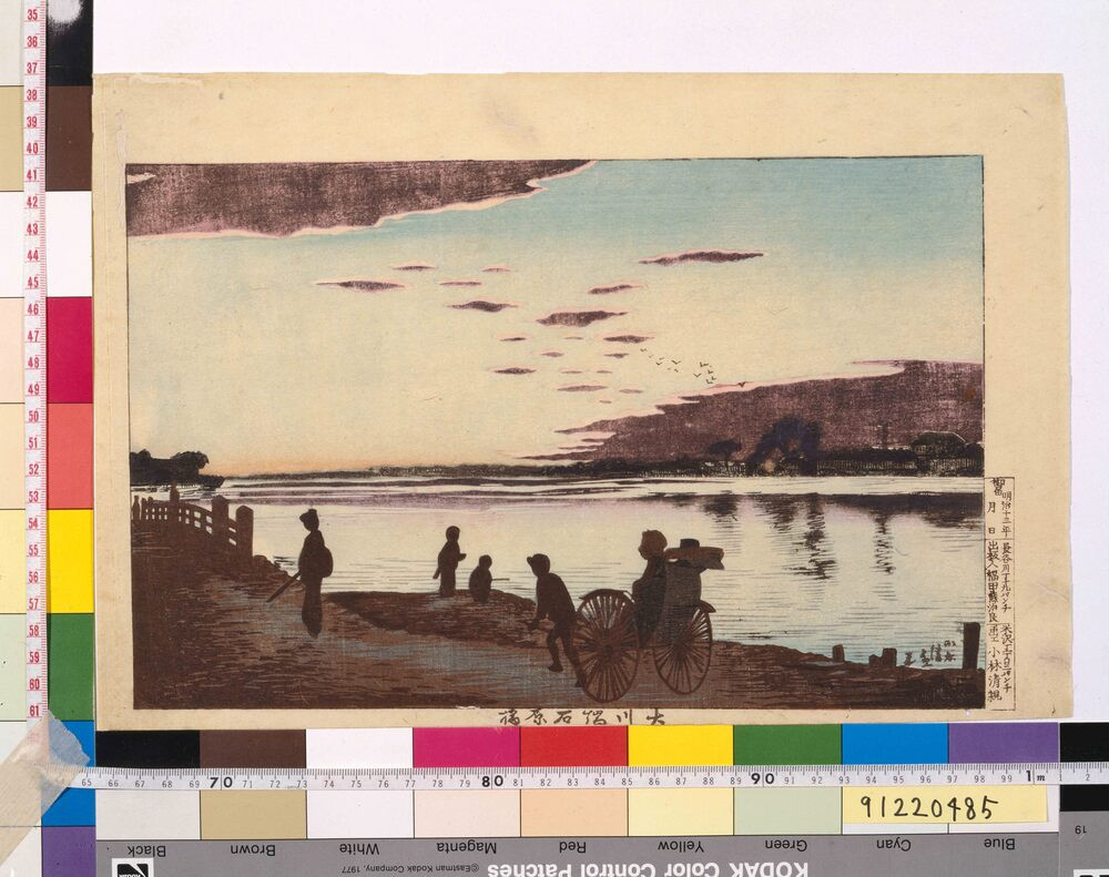 - KOBAYASHI Kiyochika “Ishihara Bridge at Okawabata” (Edo-Tokyo Museum) Source: Tokyo Museum Collection (https://museumcollection.tokyo/en/works/6246382/)