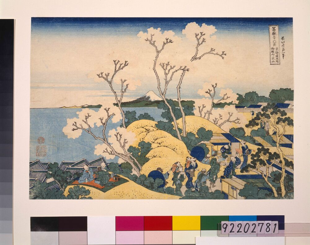 - KATSUSHIKA Hokusai “Thirty-six Views of Mt. Fuji: Fuji Seen from Goten-yama at Shinagawa, on the Tokaido” (Edo-Tokyo Museum) Source: Tokyo Museum Collection (https://museumcollection.tokyo/en/works/6249479/)
