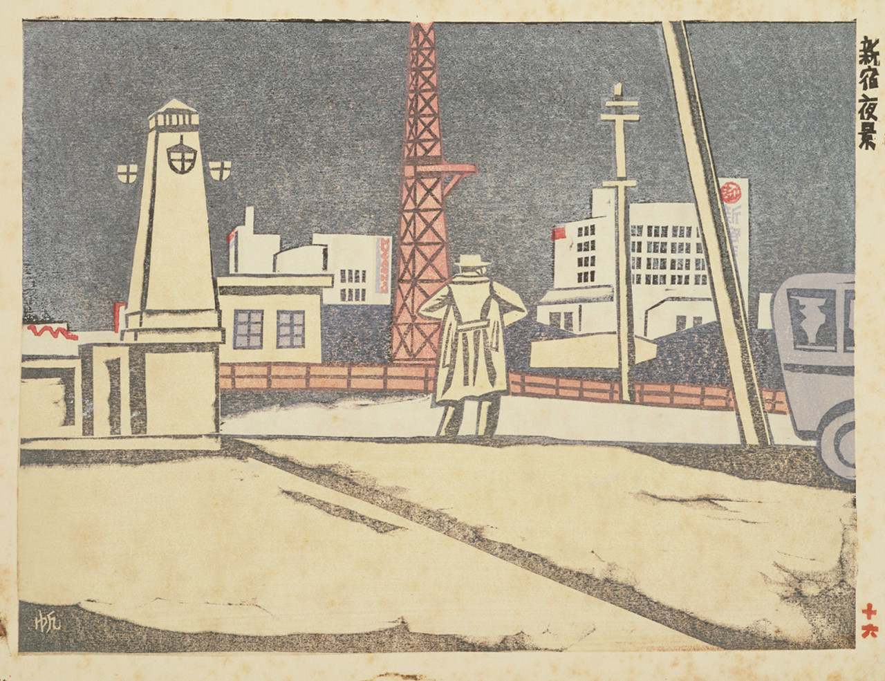 - MAEKAWA Senpan “Night View of Shinjuku [from "A Hundred Views of New Tokyo"]” (Museum of Contemporary Art Tokyo) Source: Tokyo Museum Collection (https://museumcollection.tokyo/en/works/6381145/)