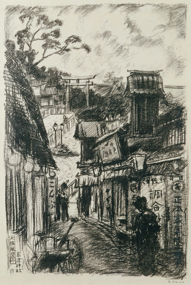 - ODA Kazuma “Kozu Shrine [from "Views of Osaka"]” (Museum of Contemporary Art Tokyo) Source: Tokyo Museum Collection (https://museumcollection.tokyo/en/works/6382638/)