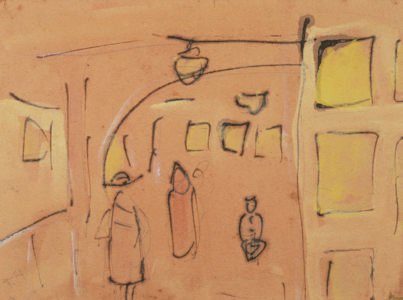 - Ink, watercolor on paper