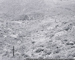 A MAN OF MERCY (SCHWEITZER) Man with steel pole, hand in right foreground