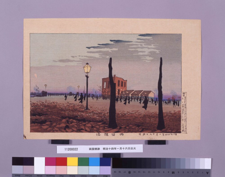 - 小林清親/画「両国焼跡 明治十四年一月十六日出火」(江戸東京博物館)出典: Tokyo Museum Collection (https://museumcollection.tokyo/works/6232148/)
