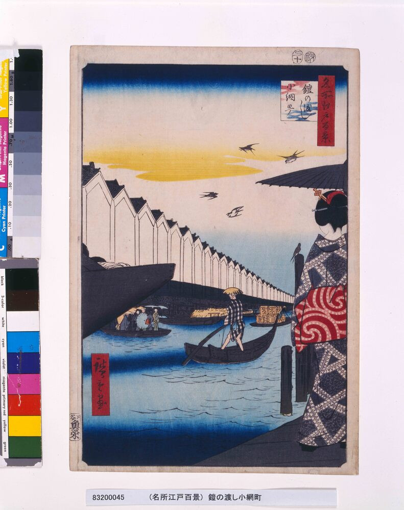 - 歌川広重(初代)/画「名所江戸百景 鎧の渡し小網町」(江戸東京博物館)出典: Tokyo Museum Collection (https://museumcollection.tokyo/works/6234961/)