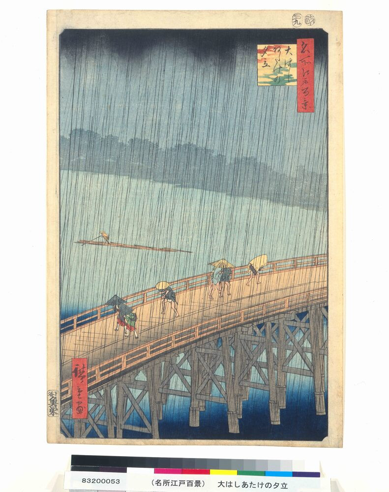 - 歌川広重(初代)/画「名所江戸百景 大はしあたけの夕立」(江戸東京博物館)出典: Tokyo Museum Collection (https://museumcollection.tokyo/works/6234971/)