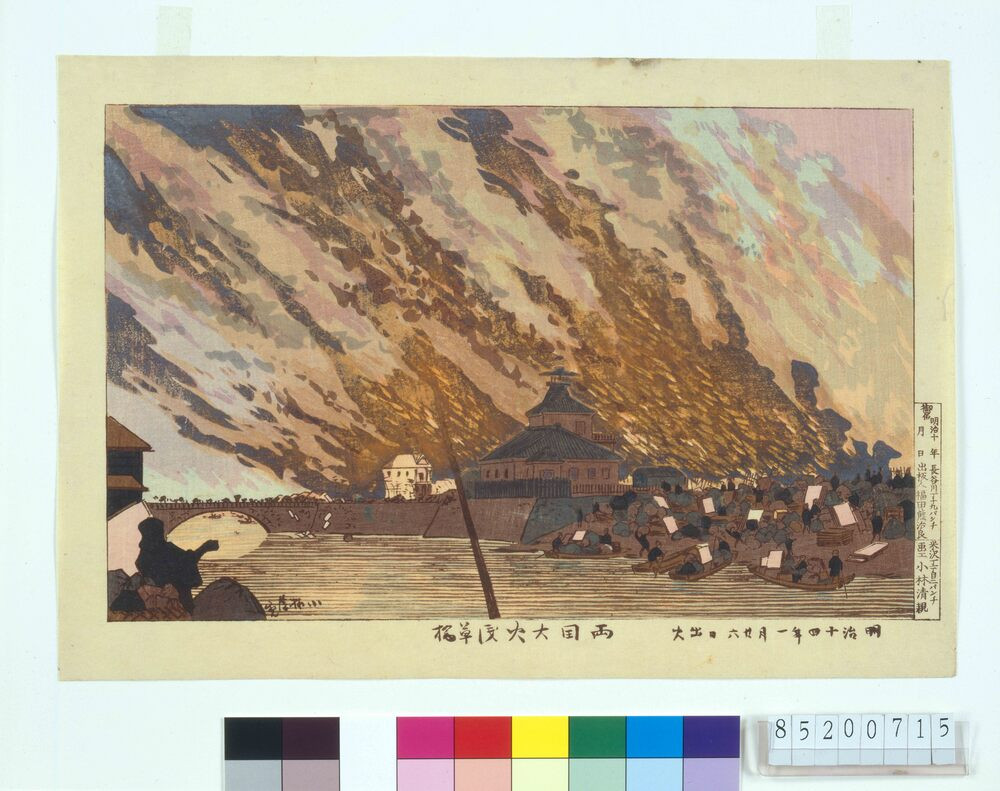 - 小林清親/画「両国大火浅草橋」(江戸東京博物館)出典: Tokyo Museum Collection (https://museumcollection.tokyo/works/6235353/)