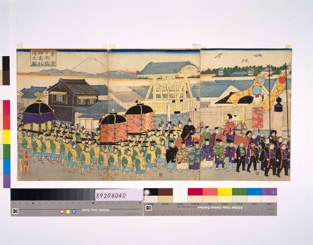 - 歌川広重(3代)/画「東亰日本橋御高札場之図」(江戸東京博物館)出典: Tokyo Museum Collection (https://museumcollection.tokyo/works/6238840/)