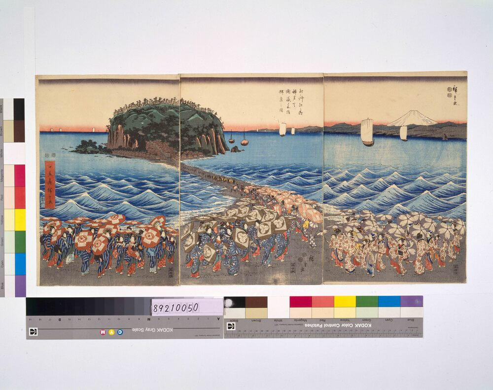 - 歌川広重/画「相州江ノ島弁財天開帳参詣群集之図」(江戸東京博物館)出典: Tokyo Museum Collection (https://museumcollection.tokyo/works/6239079/)