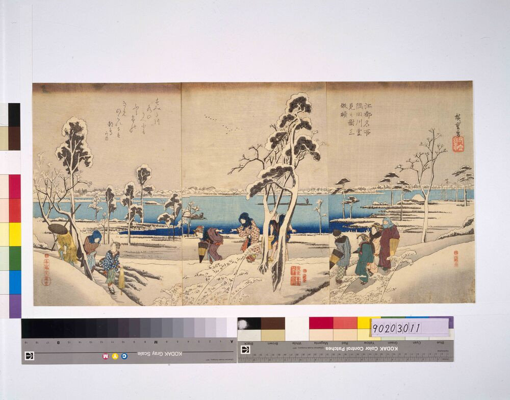 - 歌川広重/画「江都名所 隅田川雪見之図」(江戸東京博物館)出典: Tokyo Museum Collection (https://museumcollection.tokyo/works/6239554/)