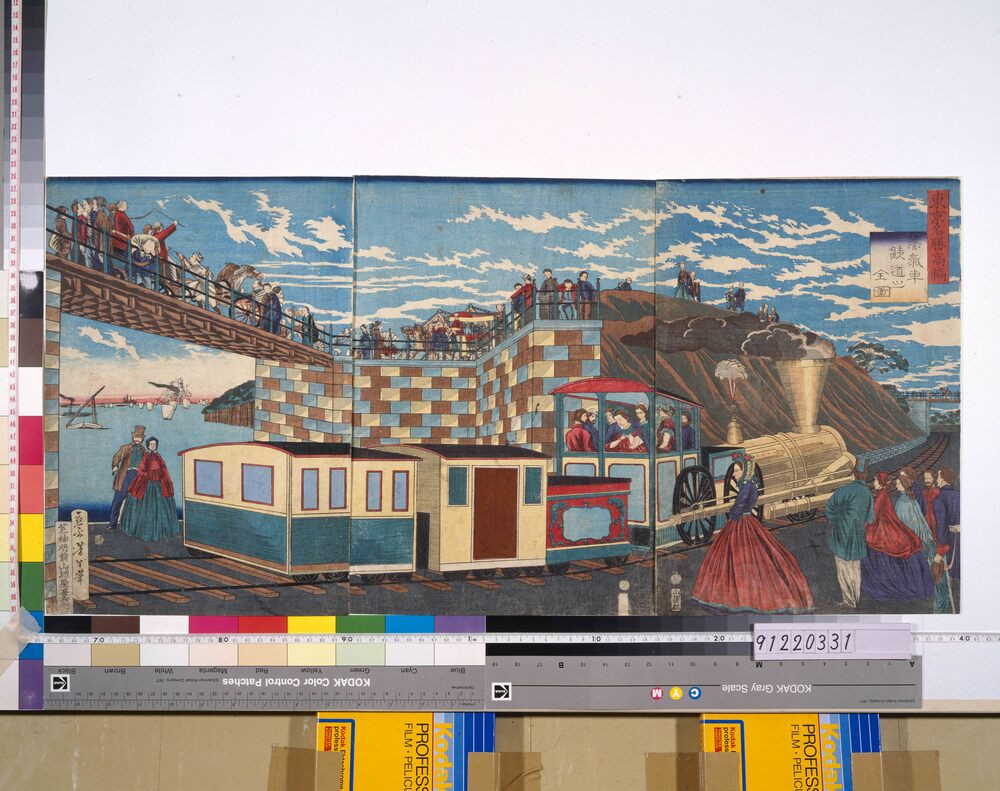 - 月岡芳年/画「東亰名勝高輪 蒸気車鉄道之全図」(江戸東京博物館)出典: Tokyo Museum Collection (https://museumcollection.tokyo/works/6246232/)