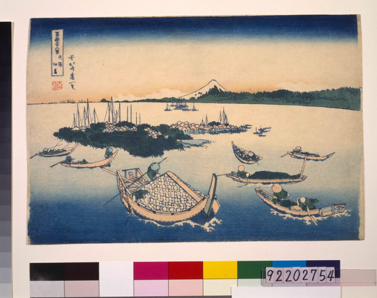 - 葛飾北斎/画「冨嶽三十六景 武陽佃島」(江戸東京博物館)出典: Tokyo Museum Collection (https://museumcollection.tokyo/works/6249398/)