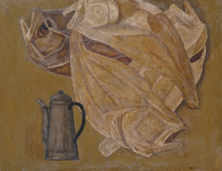 - 古茂田 守介「干魚と水差」(東京都現代美術館)出典: Tokyo Museum Collection (https://museumcollection.tokyo/works/6379262/)