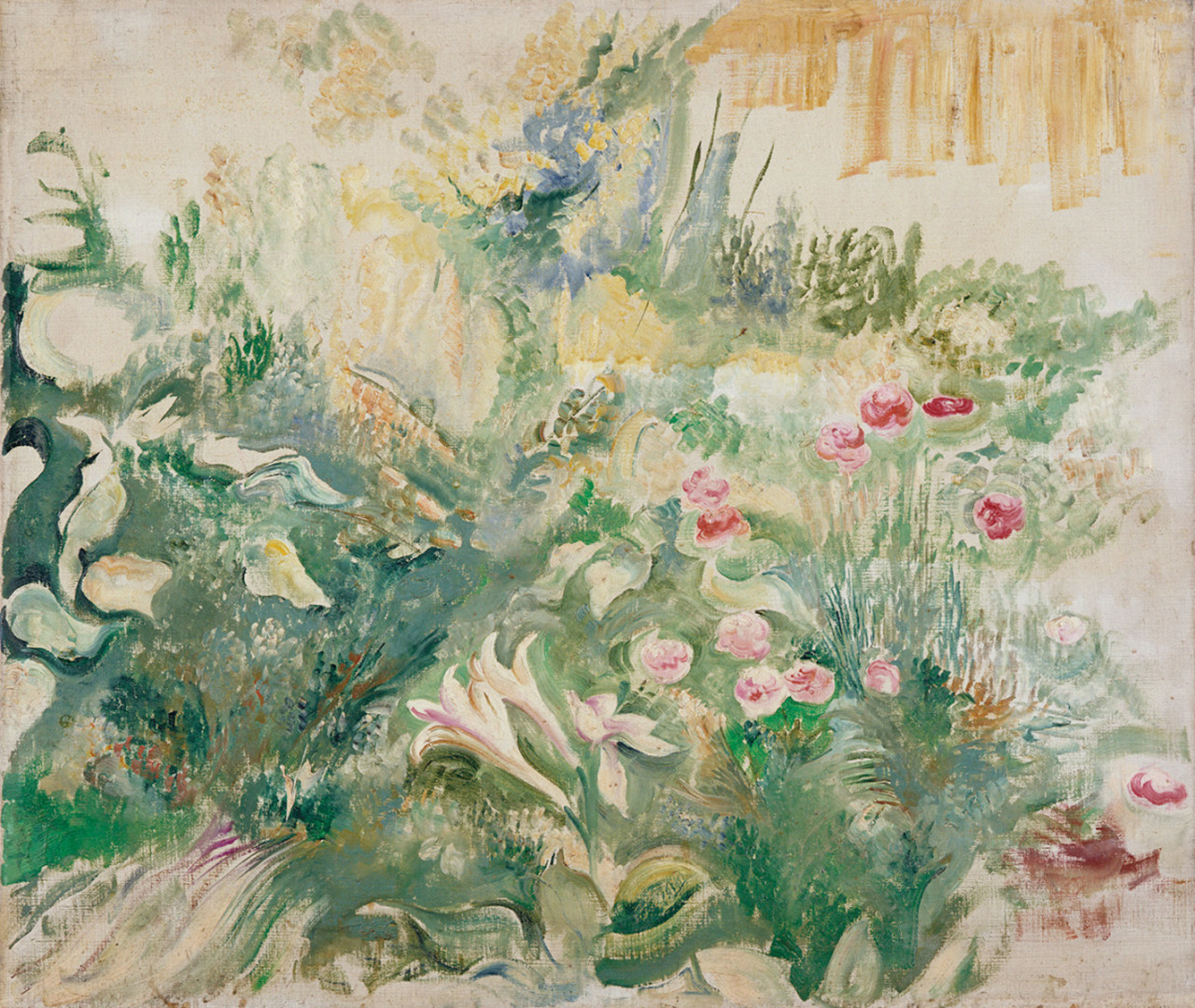 - 牧野 虎雄「庭の花」(東京都現代美術館)出典: Tokyo Museum Collection (https://museumcollection.tokyo/works/6379889/)