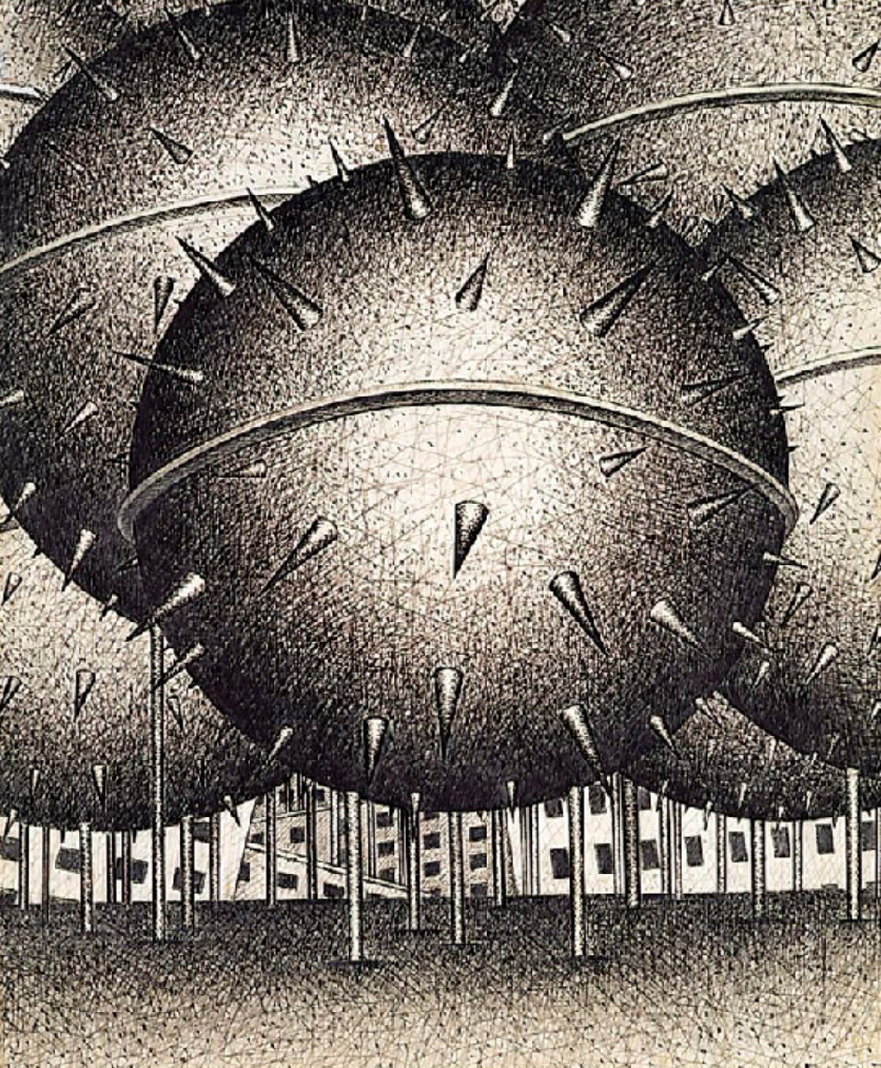 石井茂雄は、1933年東京に生まれた。1950年文化学院美術科を卒業。同年、第24回国画会展に初入選する。当初はシュルレアリスムの影響を受けた人物画を制作していたが、1955年頃からは風刺的な内容をもつ作品へと移行する。それは、見せかけの平和主義に対する挑戦ともいえる強烈な皮肉に満ちたもので、歪んだ人体や廃墟のような都市を主なモティーフとしていた。油彩画の他に、鋭い硬質の線で描かれた素描や銅版画を多く制作しているが、1960年頃には写真を用いたコラージュも手がけている。それらによって彼が表現しようとしたのは、「暴力」や「不安」といったネガティブな感情や感覚だった。戦後の日本が経済的な復興を遂げつつも、社会の奥底に芽生えていた漠然とした不安感や危機感を炙り出すかのように、皮肉なユーモアに富んだ作品を作り続けていた。