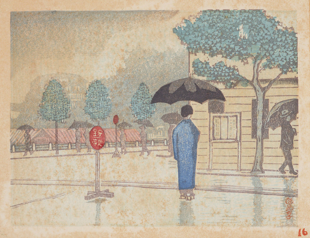 - 逸見 享「四谷見附雨景[『新東京百景』より]」(東京都現代美術館)出典: Tokyo Museum Collection (https://museumcollection.tokyo/works/6381079/)