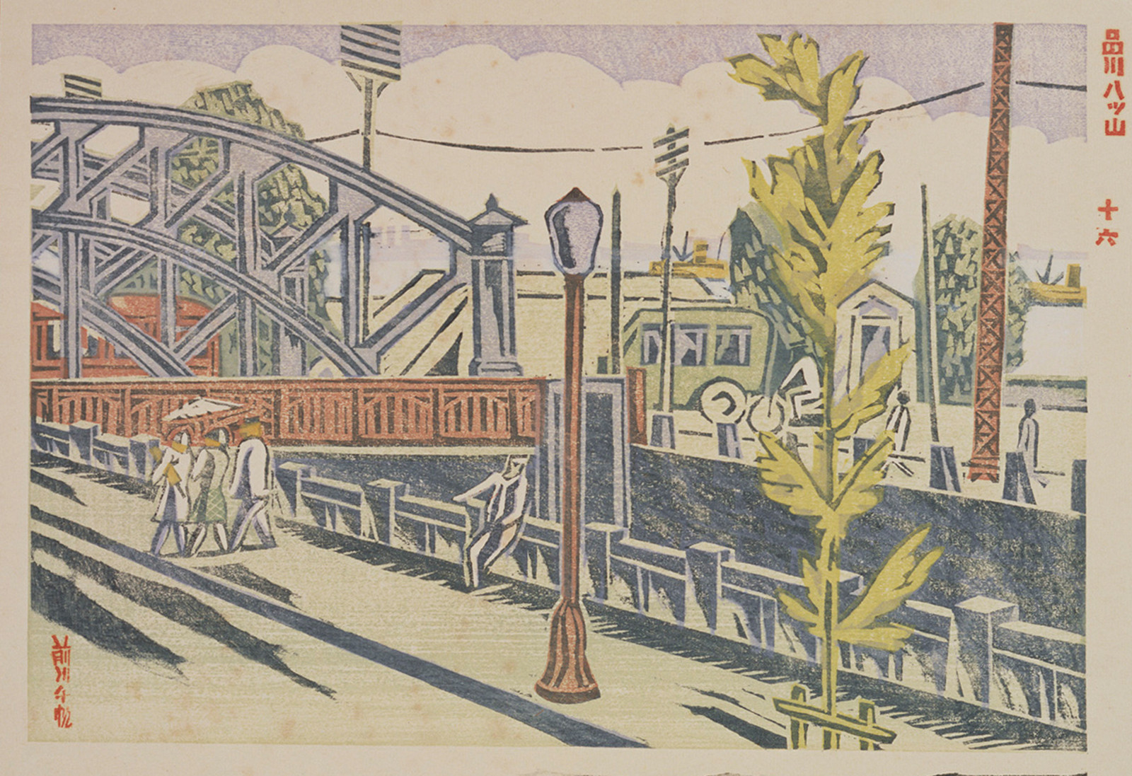 - 前川 千帆「品川八ッ山[『新東京百景』より]」(東京都現代美術館)出典: Tokyo Museum Collection (https://museumcollection.tokyo/works/6381102/)