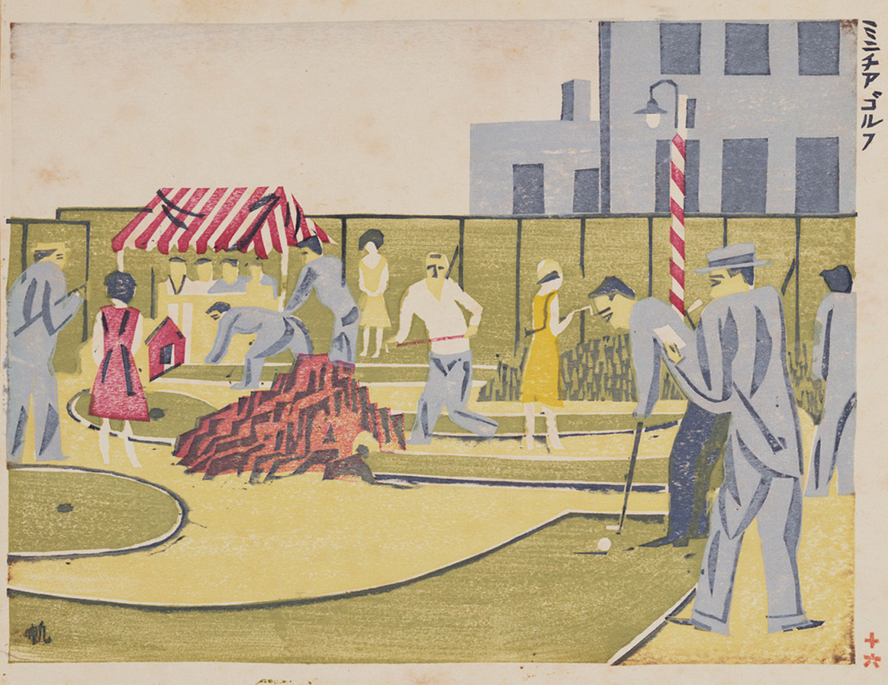 - 前川 千帆「ミニチアゴルフ[『新東京百景』より]」(東京都現代美術館)出典: Tokyo Museum Collection (https://museumcollection.tokyo/works/6381107/)