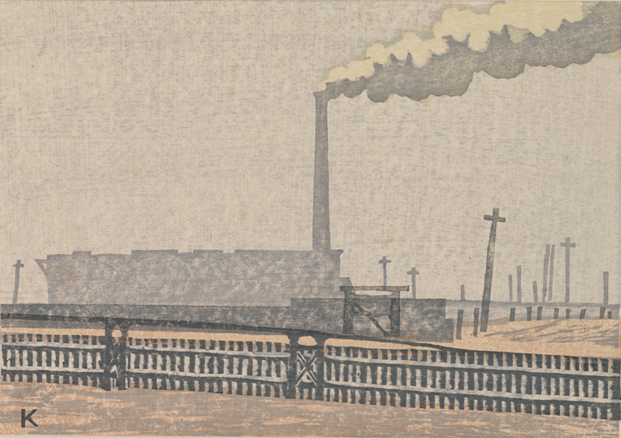 - 諏訪 兼紀「深川塵埃焼却場[『新東京百景』より]」(東京都現代美術館)出典: Tokyo Museum Collection (https://museumcollection.tokyo/works/6381115/)