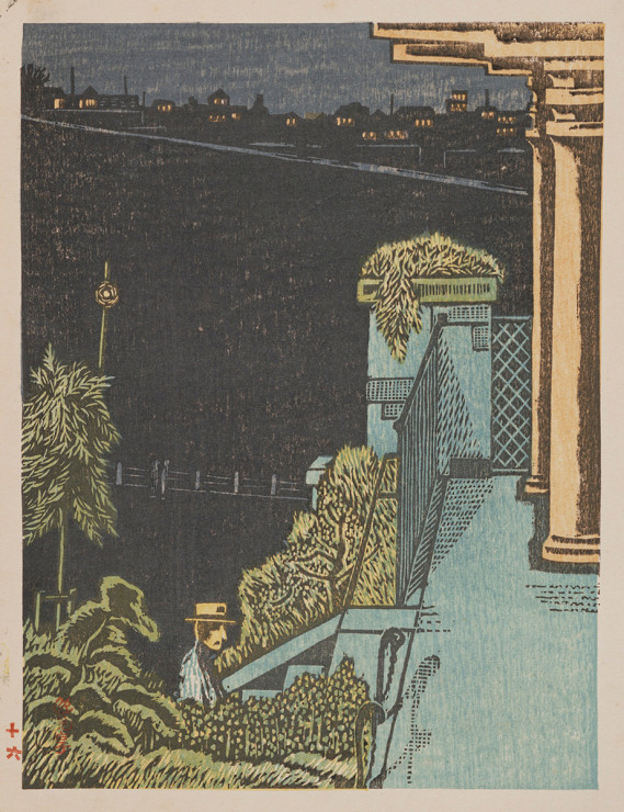 - 逸見 享「本郷元町公園[『新東京百景』より]」(東京都現代美術館)出典: Tokyo Museum Collection (https://museumcollection.tokyo/works/6381136/)