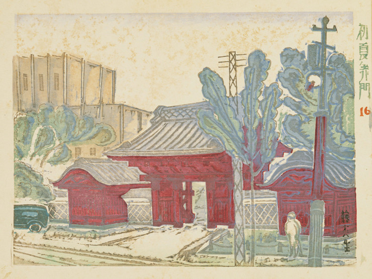- 藤森 静雄「初夏赤門[『新東京百景』より]」(東京都現代美術館)出典: Tokyo Museum Collection (https://museumcollection.tokyo/works/6381137/)