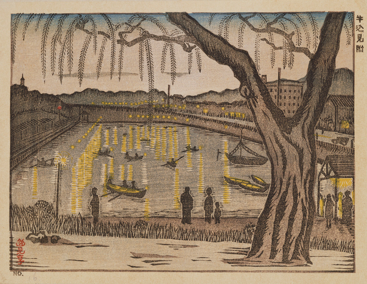 - 逸見 享「牛込見附[『新東京百景』より]」(東京都現代美術館)出典: Tokyo Museum Collection (https://museumcollection.tokyo/works/6381140/)