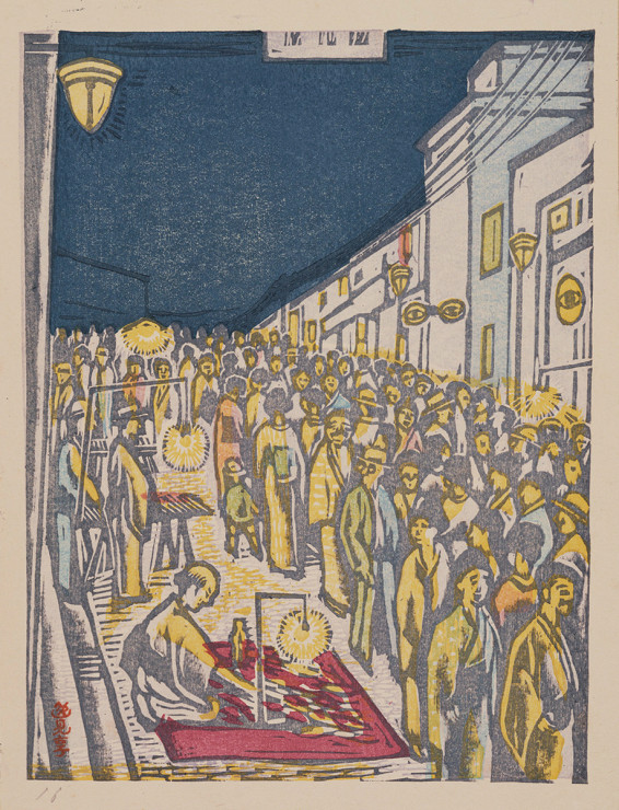 - 逸見 享「神楽坂[『新東京百景』より]」(東京都現代美術館)出典: Tokyo Museum Collection (https://museumcollection.tokyo/works/6381141/)