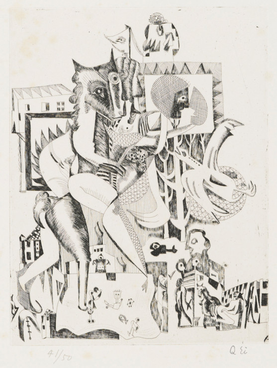 - 瑛九「ささやき[『波のたわむれ』より]」(東京都現代美術館)出典: Tokyo Museum Collection (https://museumcollection.tokyo/works/6381906/)