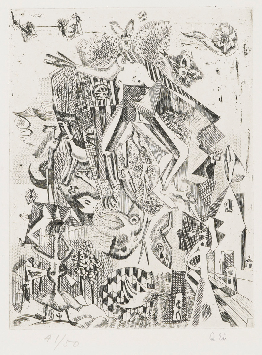 - 瑛九「動物の仲間[『林の目』より]」(東京都現代美術館)出典: Tokyo Museum Collection (https://museumcollection.tokyo/works/6381914/)