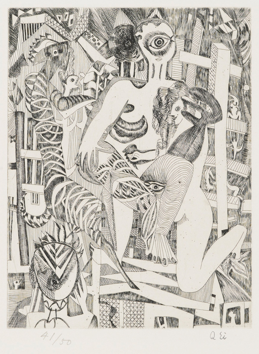 - 瑛九「庭園[『林の目』より]」(東京都現代美術館)出典: Tokyo Museum Collection (https://museumcollection.tokyo/works/6381915/)