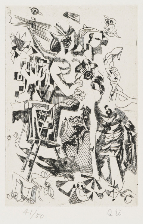 - 瑛九「仲間[『林の目』より]」(東京都現代美術館)出典: Tokyo Museum Collection (https://museumcollection.tokyo/works/6381916/)