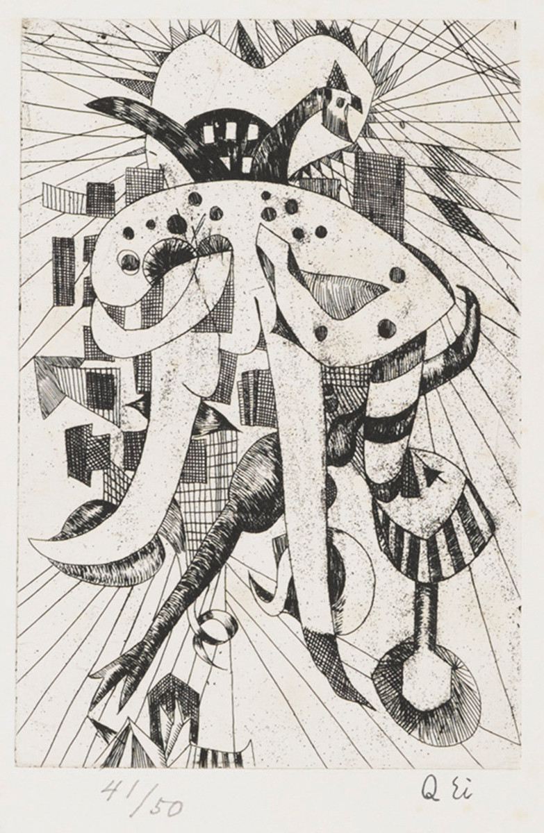 - 瑛九「鳥の踊り[『雲の花』より]」(東京都現代美術館)出典: Tokyo Museum Collection (https://museumcollection.tokyo/works/6381927/)