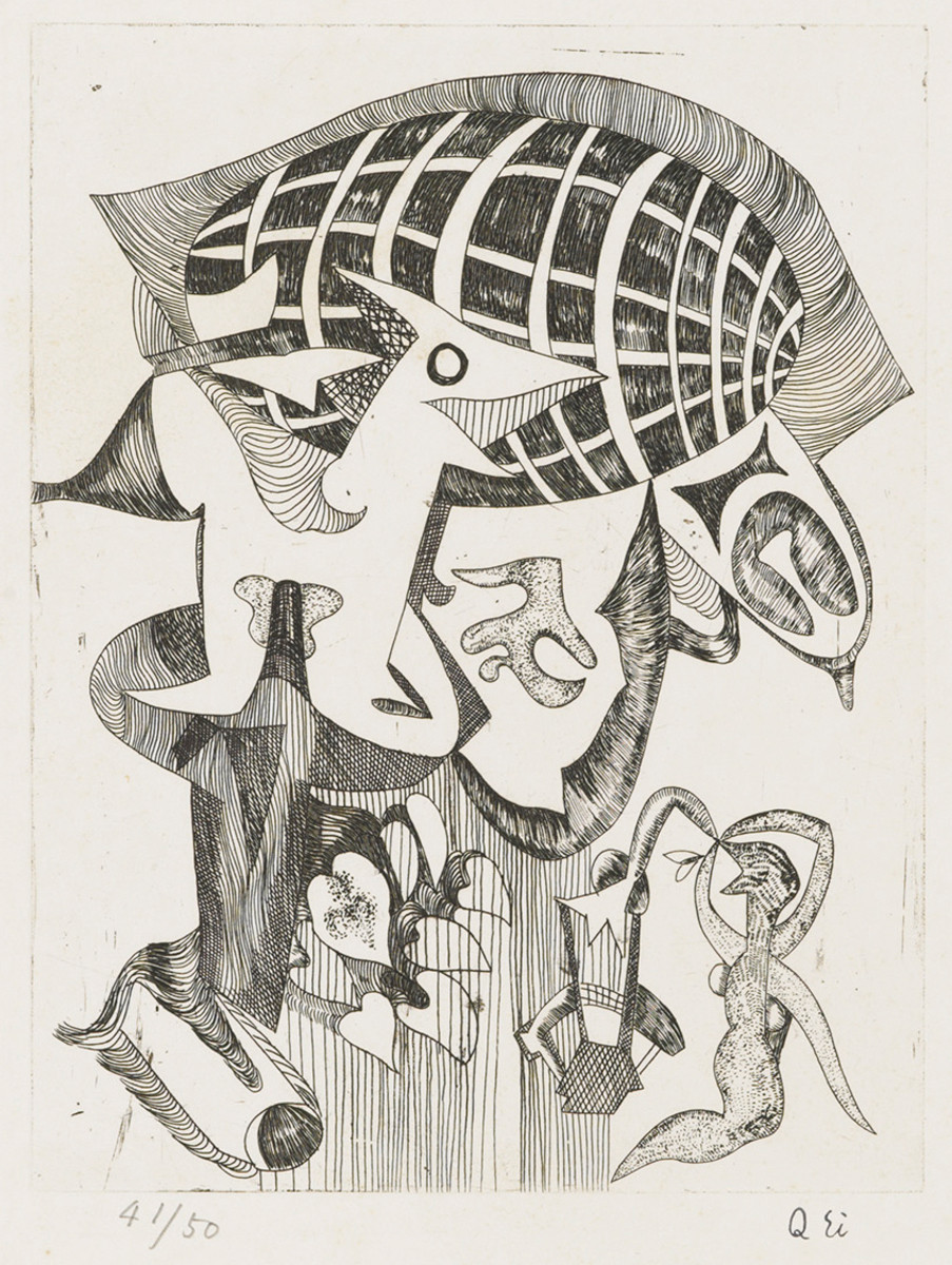 - 瑛九「よろこび B[『サーカス』より]」(東京都現代美術館)出典: Tokyo Museum Collection (https://museumcollection.tokyo/works/6381931/)