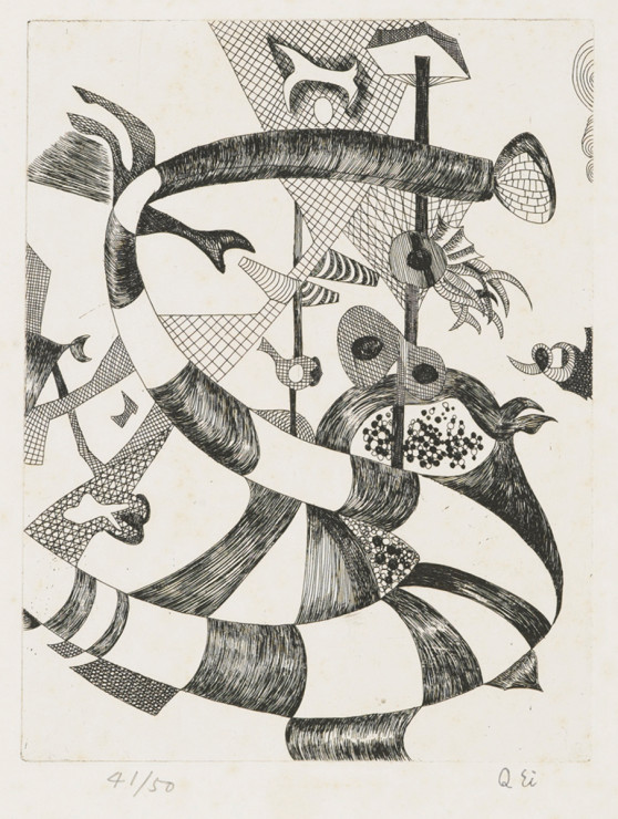 - 瑛九「シグナル B[『サーカス』より]」(東京都現代美術館)出典: Tokyo Museum Collection (https://museumcollection.tokyo/works/6381936/)