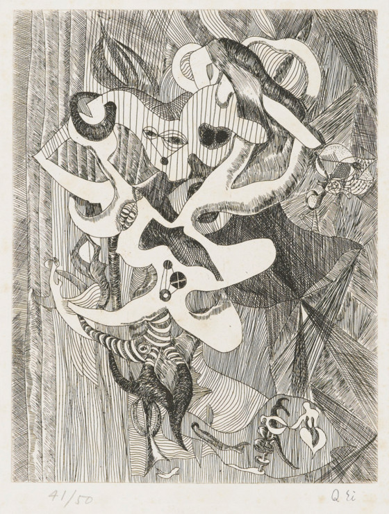 - 瑛九「誘惑[『風車』より]」(東京都現代美術館)出典: Tokyo Museum Collection (https://museumcollection.tokyo/works/6381945/)