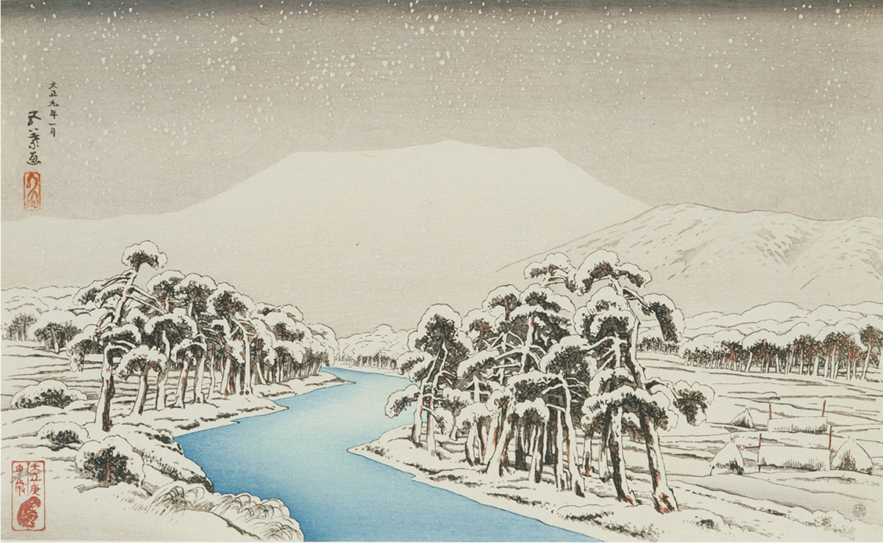 - 橋口 五葉「雪の伊吹山」(東京都現代美術館)出典: Tokyo Museum Collection (https://museumcollection.tokyo/works/6382247/)
