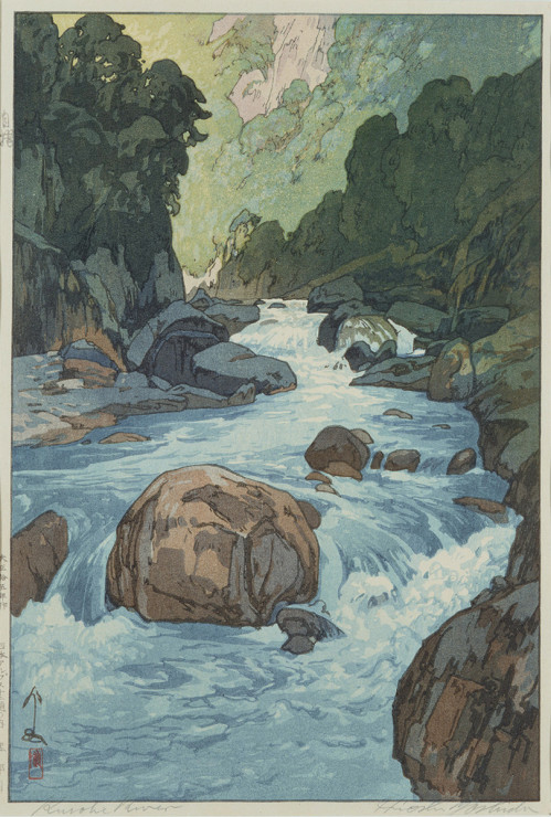 - 吉田 博「黒部川[『日本アルプス十二題』より]」(東京都現代美術館)出典: Tokyo Museum Collection (https://museumcollection.tokyo/works/6382507/)
