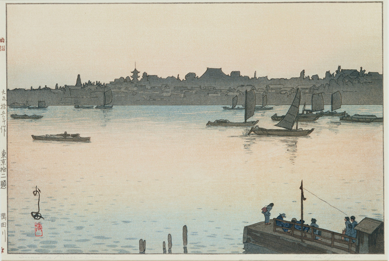 - 吉田 博「隅田川 夕[『東京拾二題』より]」(東京都現代美術館)出典: Tokyo Museum Collection (https://museumcollection.tokyo/works/6382520/)