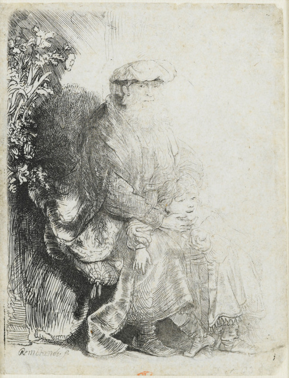 - レンブラント・ファン・レイン「イサクを愛撫するアブラハム」(東京都現代美術館)出典: Tokyo Museum Collection (https://museumcollection.tokyo/works/6382598/)