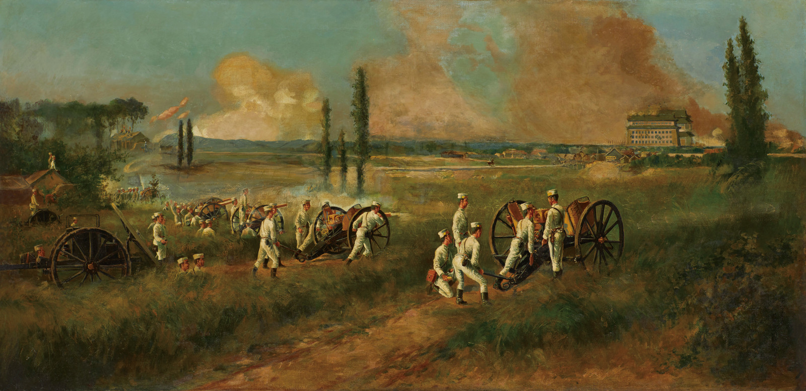 - 飯田 清三「[砲撃]」(東京都現代美術館)出典: Tokyo Museum Collection (https://museumcollection.tokyo/works/6386881/)