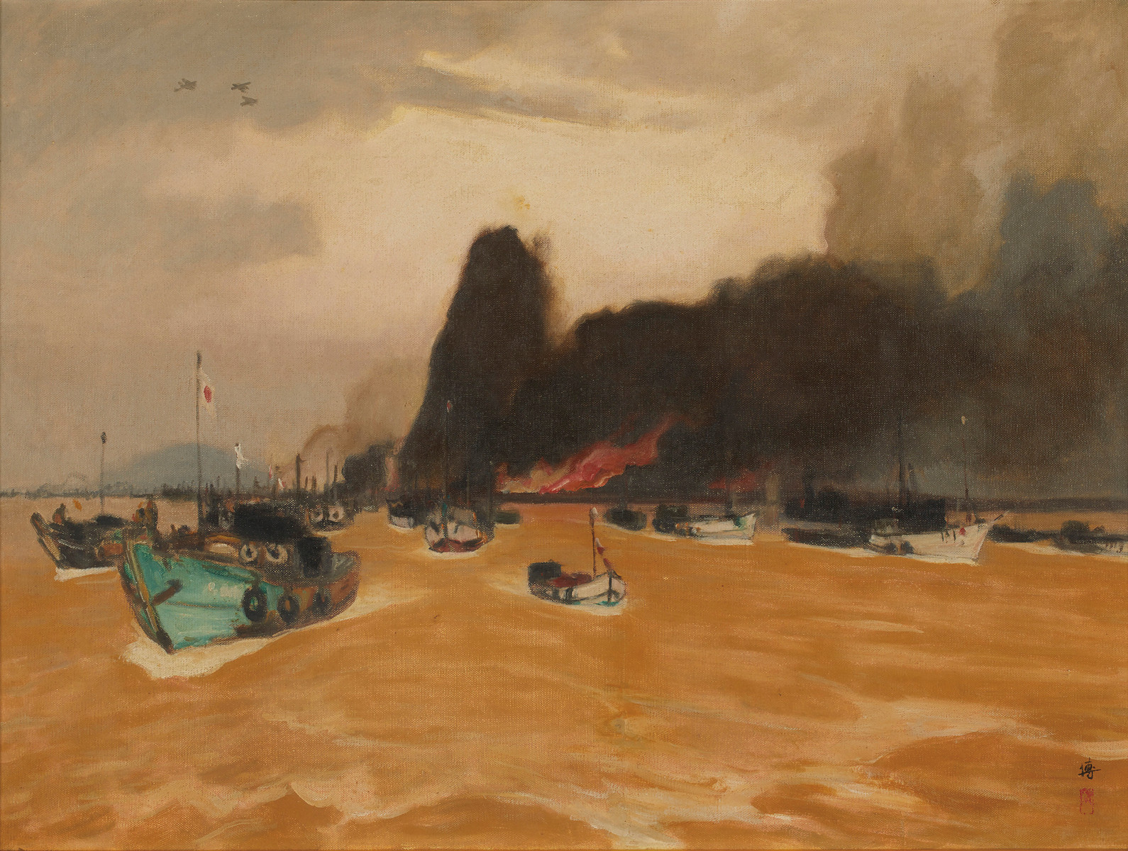 - 吉田 博「黄河砲戦」(東京都現代美術館)出典: Tokyo Museum Collection (https://museumcollection.tokyo/works/6386960/)